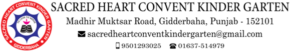 Sacred Heart Convent Kinder Garten, Gidderbaha is an undertaking of Charity Sisters under the management of Santhome Province, Ghaziabad of the Congregation of Sisters of Charity. Congregation of Sisters of Charity (C.S.C.) is a catholic society which undertakes educational and charitable activities in Punjab, Kerala, Uttar Pradesh, Andhra Pradesh, Madhya Pradesh, Haryana, Uttarakhand, Maharashtra, Rajasthan, Tamil Nadu, Jharkand, Italy, Germany, Africa and in various other parts of the world. We are taking admission by Keeping the main motto “TO LOVE TO SERVE” in our minds.